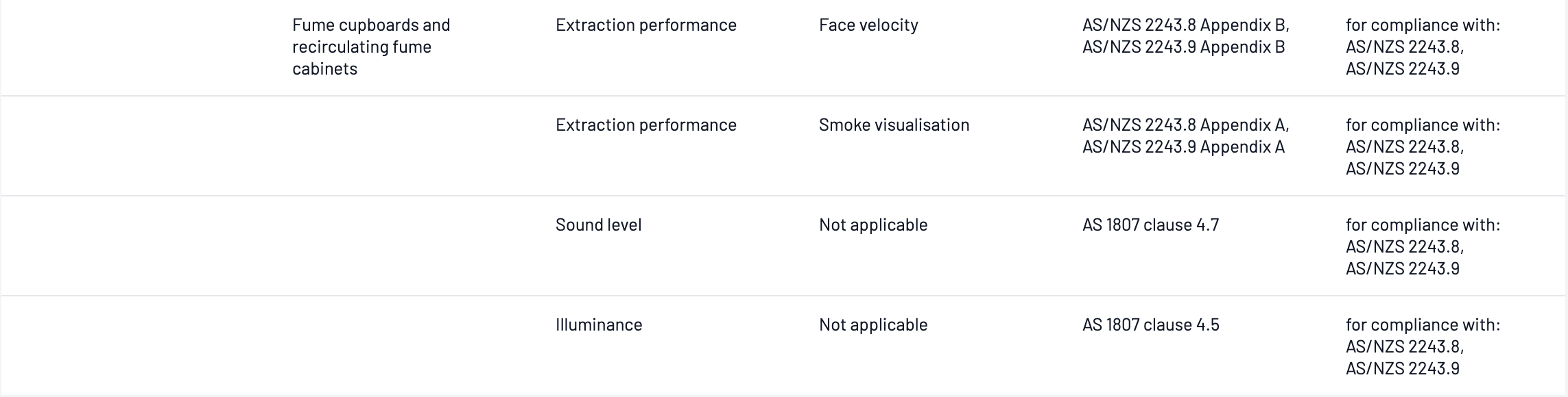 AMT is also able to offer cabinet, room and equipment decontamination services for workstations that require decontamination prior to testing/servicing under AS/NZS2243 Safety in Labotatories Standards (AS/NZS2243.3 for Microbiological Safety and AS/NZS2243.8/9 for Fume Cupboards/Cabinets).